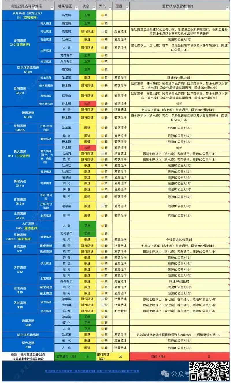 标题:“最新!黑龙江省高速公路通行状况(12月7日7时18分),涉黑河段→》