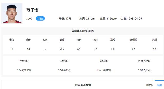范子铭的优点是具有一定的进攻能力,缺点是一般防御。单个外援赛季,场上多个攻击点对形势更好。这个赛季双外援政策,场上不缺有一定进攻能力的球员,除非你有很强的进攻属性,否则更需要蓝领和防守协助外援。那也是邱天在北京队的出场时间(21) 超越范子铭(18分钟) 主要原因是分钟)。言外之意,本赛季范子铭给球队的贡献与薪水不成正比。