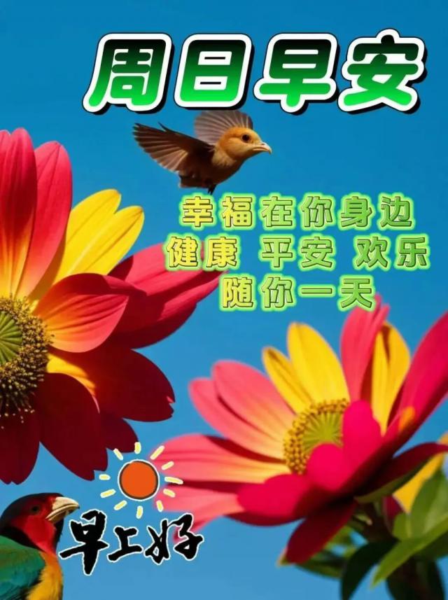 愿阳光照耀你前进的道路,愿花儿绽放你人生的旅程,愿我最真挚的祝福,带给你无尽的欢乐,愿你今天每一个人都幸福,愿你每一个星期天都幸福。早上好!