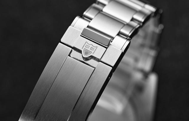 美中不足的是,这款手表没有配备五珠链,而是配备了三链“铆钉”不锈钢表带。此外,还有橡胶表带可供选择,价格比钢链便宜。 1700 元。两种款式的手表都配有帝舵手表” T-fit "带扣,可以自己微调,比较方便。