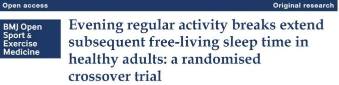 夜间进行碎片化、短时间“轻”阻力训练-深蹲、提跟、提膝展臀,可使当晚睡眠时间增加近30分钟。