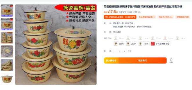 河北省一家塘瓷店,网店商品页面显示,店内搪瓷盆已售出一万多件,下单时,许多都是做蛋糕的。