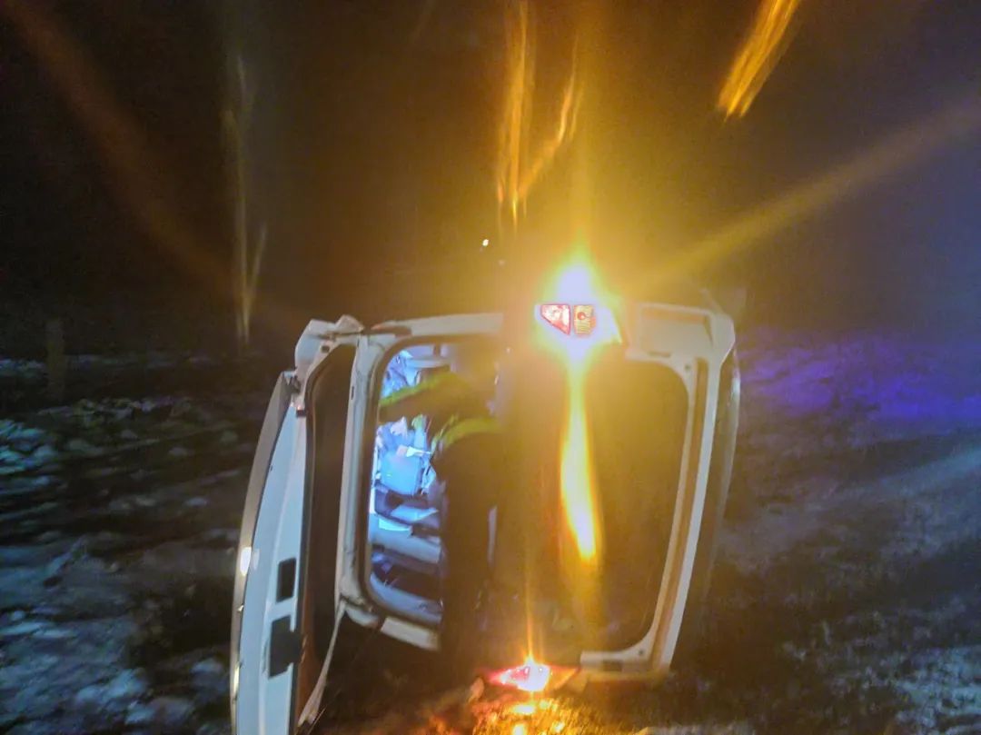 3、车辆翻车,孕妇被困,幸好遇见了她们!最近,受冷空气影响,灵武市马家滩镇辖区开始下雪,244省道和308省道路结冰,道路湿滑。灵武市公安局马家滩派出所立即启动应急预案,组织民警辅警联合路政对结冰道路喷洒融雪剂。在此期间,警方陈明发现一辆小车由于路面湿滑,操作失误侧翻进路沟,两人被困,其中一名被困人员已怀孕5个月。警察辅警上前救援。警方发现车辆后门被外力挤压打不开,被困人员靠近窗户。贸然破窗会对被困人员造成二次伤害。为了尽快救出被困人员,警方随后向路边的大车司机借了两根撬杠。撬开后备箱后,他们果断地从后备箱钻进车里,大家一起努力救出被困人员。”“非常感谢你们!”之后,警方对被困人员家属表示诚挚的感谢。(@安全灵武)