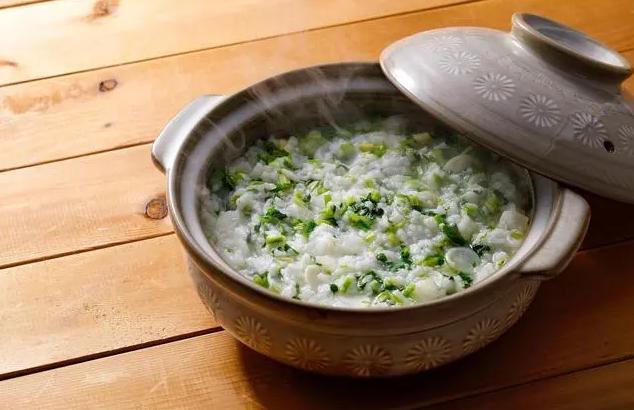 将茴香炒熟,放入纱布袋中,水煎取汁与粳米煮粥,加盐调味。