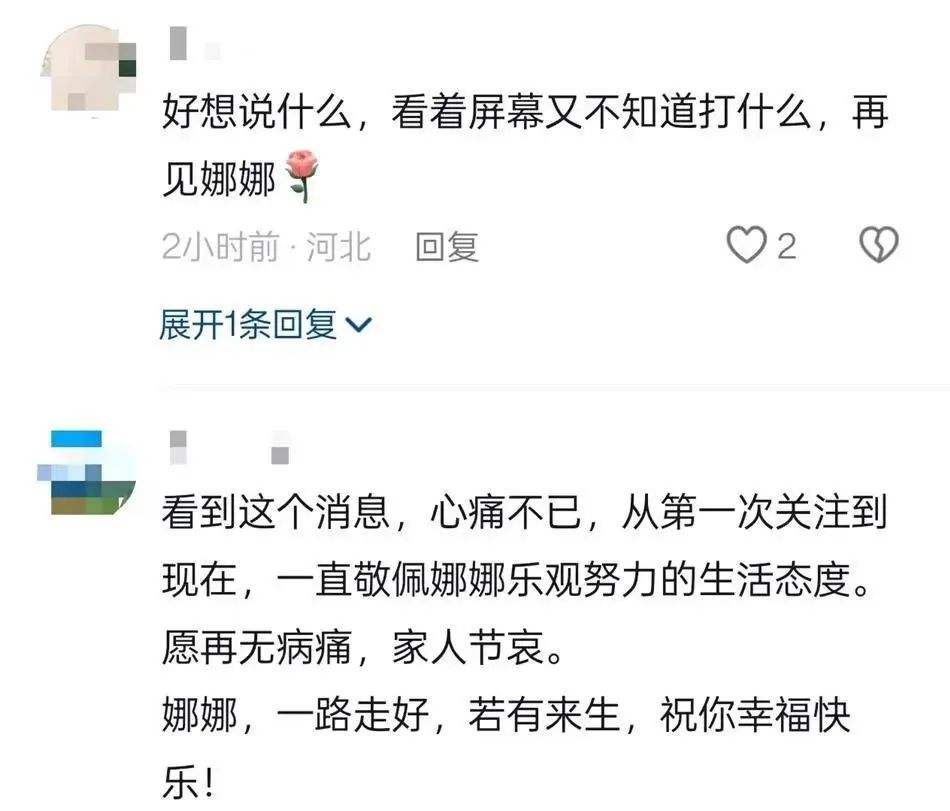 对于这一点,网友们纷纷哀悼:天堂没有痛苦,愿娜娜成为天使!一路走好!