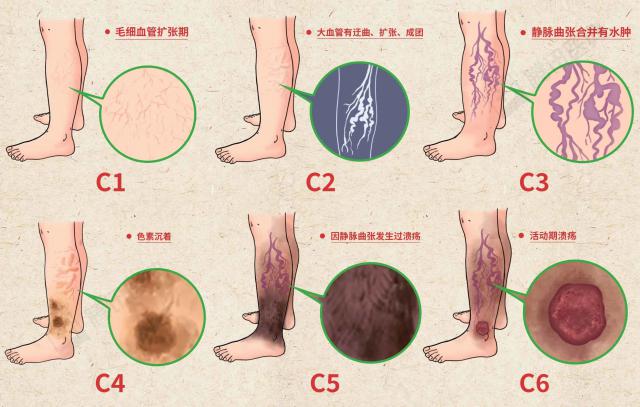 从临床上看,整个进展分为 6 这就是所谓的阶段 CEAP 分级 [ 2 ] ,具体如下: