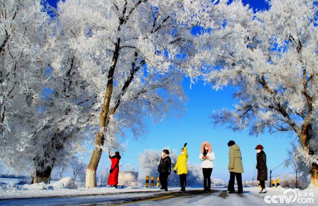 雾凇美景出现在新疆塔城裕民县郊区,到处都是玉树琼枝,银装素裹,景色迷人。