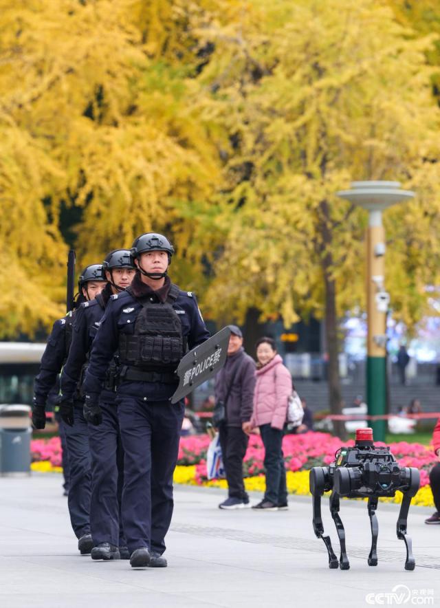 成都天府广场机器警犬上线巡逻。