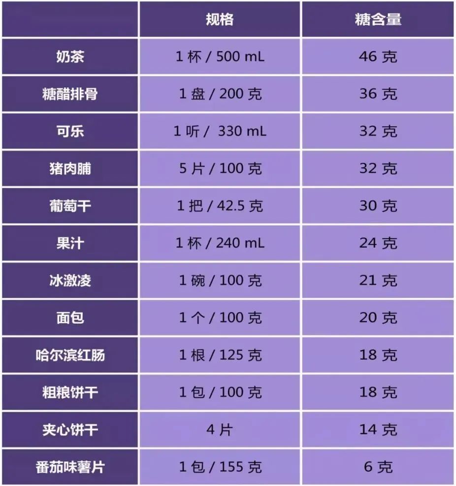 普通食品中的糖分含量