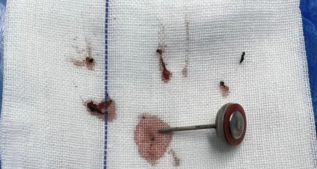 经检查,完全取出电池保护盖、集电器和残渣,妥善止血,清理伤口,缝合缝合,迅速解决了这一困境。