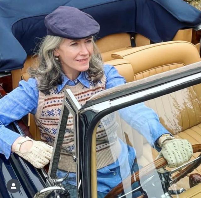 年轻的时候曾经环游世界,现在穿着皮衣,开着古董车,依然飒爽自由。