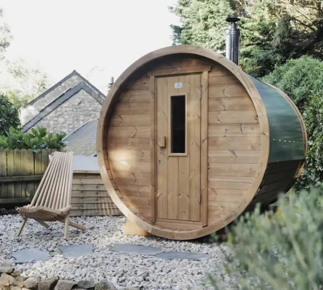 它们还建造了一个造型独特的桑拿房,就像一个大酒桶,偶尔蒸洗桑拿,缓解疲劳,使身心得到解放。