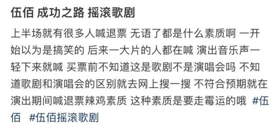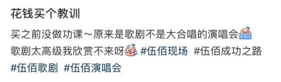 还有人说自己在买票之前没看清楚,“买票之前没做作业,竟然是歌剧,不是大合唱的音乐会。”