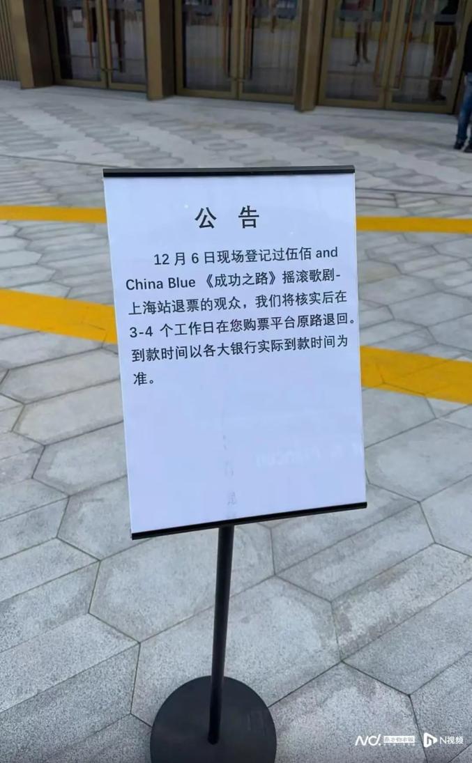 十二月六日,伍佰and China 在Blue摇滚歌剧《成功之路》上海站表演现场,部分观众因误解表演为伍佰个人演唱会而高喊退款,中场休息结束后聚集在剧院大厅要求退款。