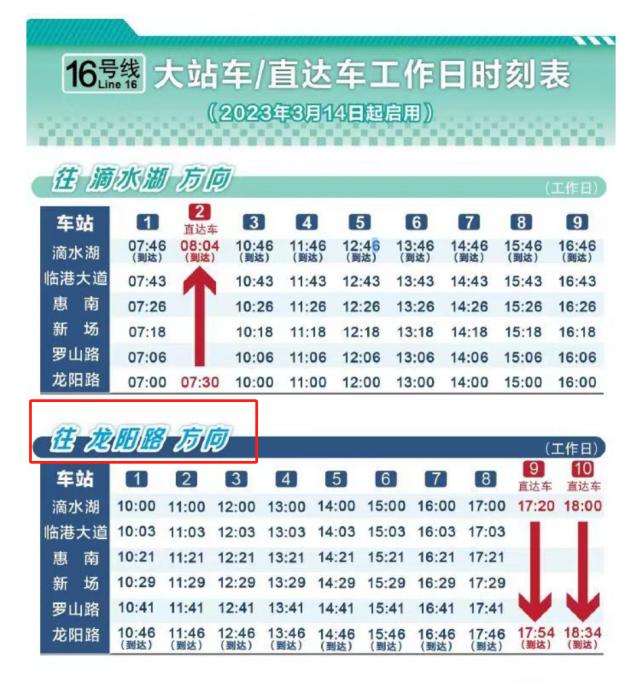 但是早高峰的大站车,只有龙阳路 - 滴水湖方向