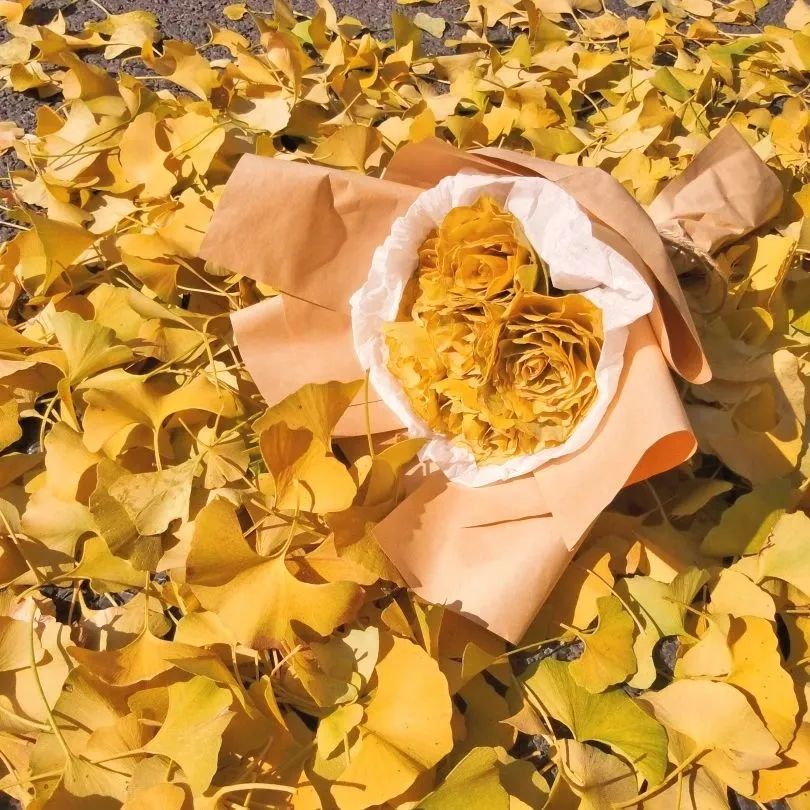 风一吹,落得满地都是金黄色,踩在上面,“嘎吱”的声音仿佛是一年一度的终末曲。