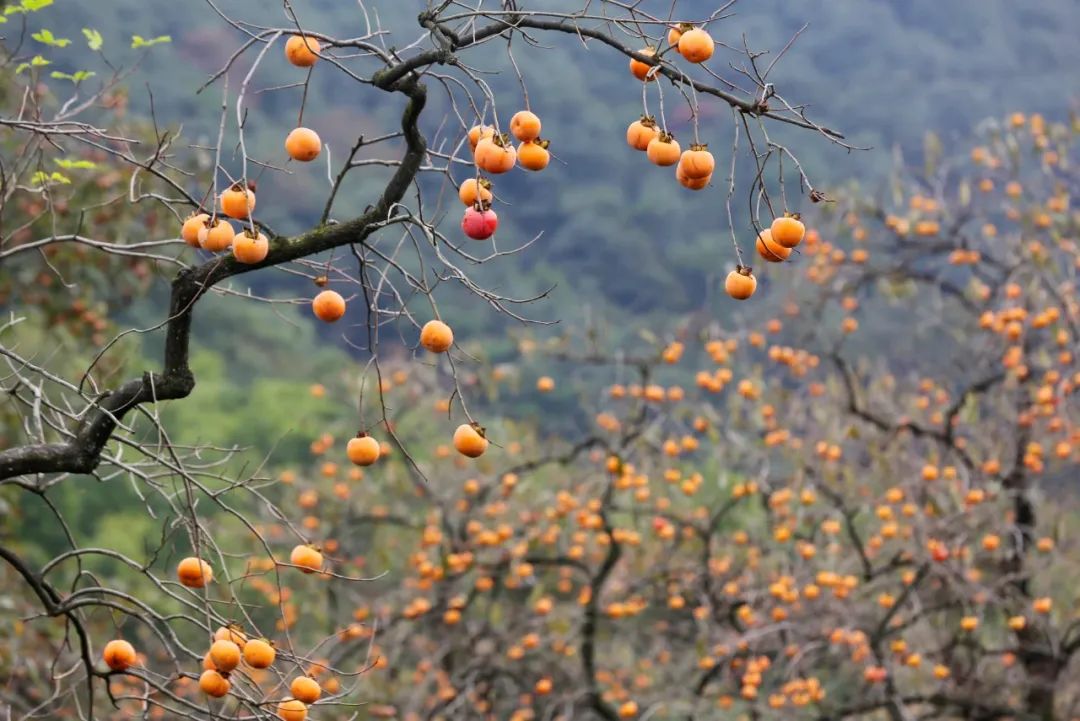 在1500多棵古柿子上,成千上万的柿子垂下来,像灯笼一样点缀在山野之间。时间在流动,故事在变,但柿子依然浪漫。每年这个时候,它都会如期而至,从不放弃承诺。