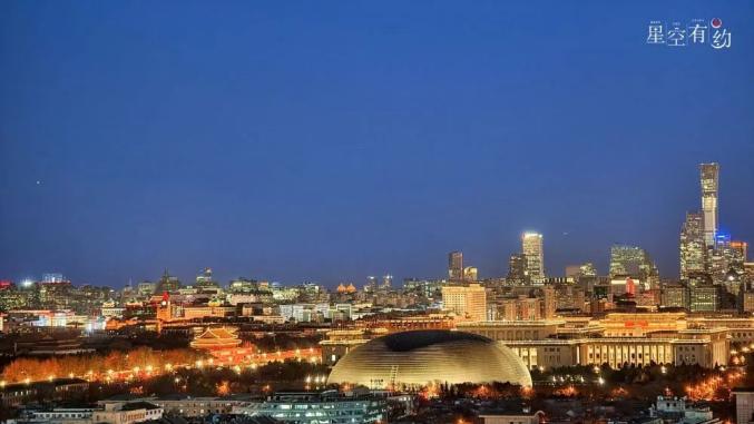 新升起的木星(图左)于2024年12月2日在北京市西城区拍摄。(王俊峰摄)