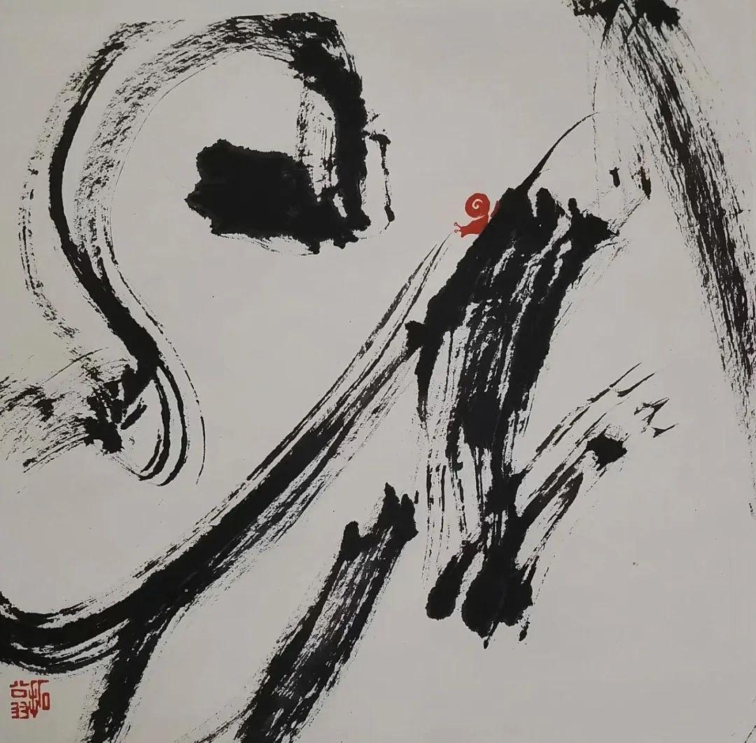 展览现场展出的作品采用传统方法,遵循书画笔法的共同规律。特别是在线条的运用上,既有书法的线条节奏,又有中国画构图的灵动性,营造出“飘如云,矫若惊龙”的动感和活力,给观众留下了丰富的想象空间。