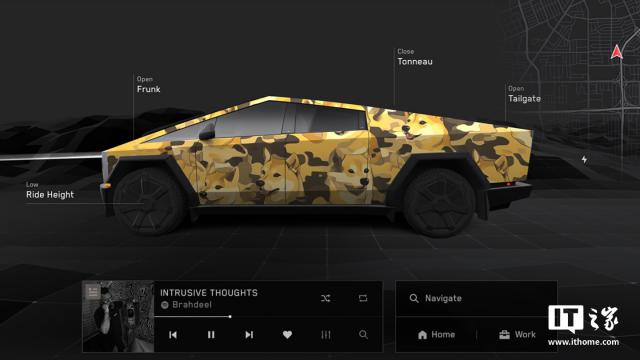 IT 世家 12 月 8 特斯拉证实了每天的消息。 2024 第一次在年假更新中推出 Cybertruck 汽车娱乐中心的虚拟贴膜功能将逐步推广到其它车型。