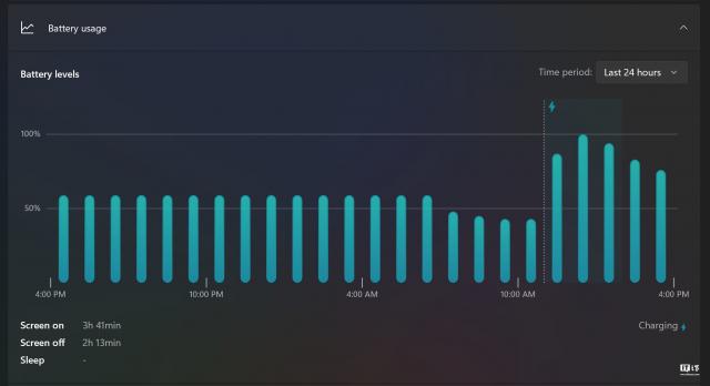 另外,微软还悄悄地改进了电源用量图,现在用户可以查看自己设备在特定时间段使用的实际电量。