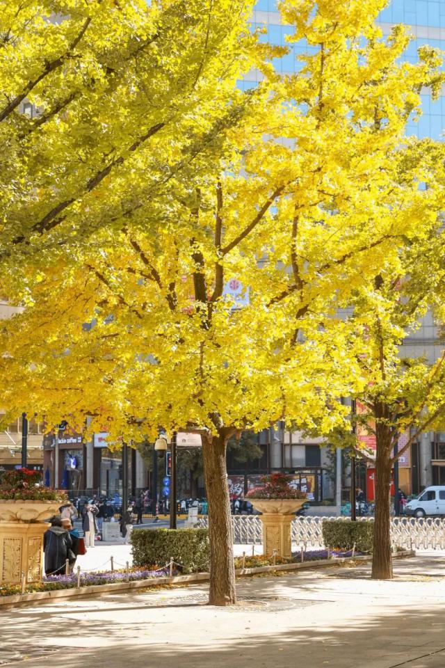 每一个银杏季节,局门路就像是大自然打翻的“调色盘”,红色的建筑和金色的银杏一起画出一幅浓郁而美丽的画轴。