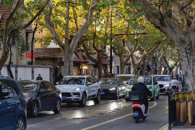 今年,局门路(瞿溪路) - 五里桥路)也被列入上海市落叶不扫景观道。当枯叶堆积在路边时,各种路边商店散落其中,局门路变成了一个充满烟火的“金色世界”。