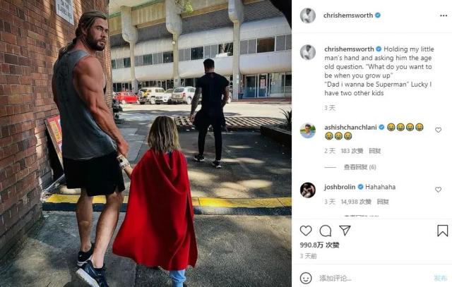 没想到,这样一个八块腹肌明显,肌肉线条清晰,在好莱坞身材都能排在前列的锤哥,甚至还被很多网友嘲讽。。发生了什么事?原来,锤哥在。 ins 在上面晒了一张和儿子的照片,右手牵着身穿红色斗篷的小儿子,爷爷俩热情地聊着天,画面本来就很美。