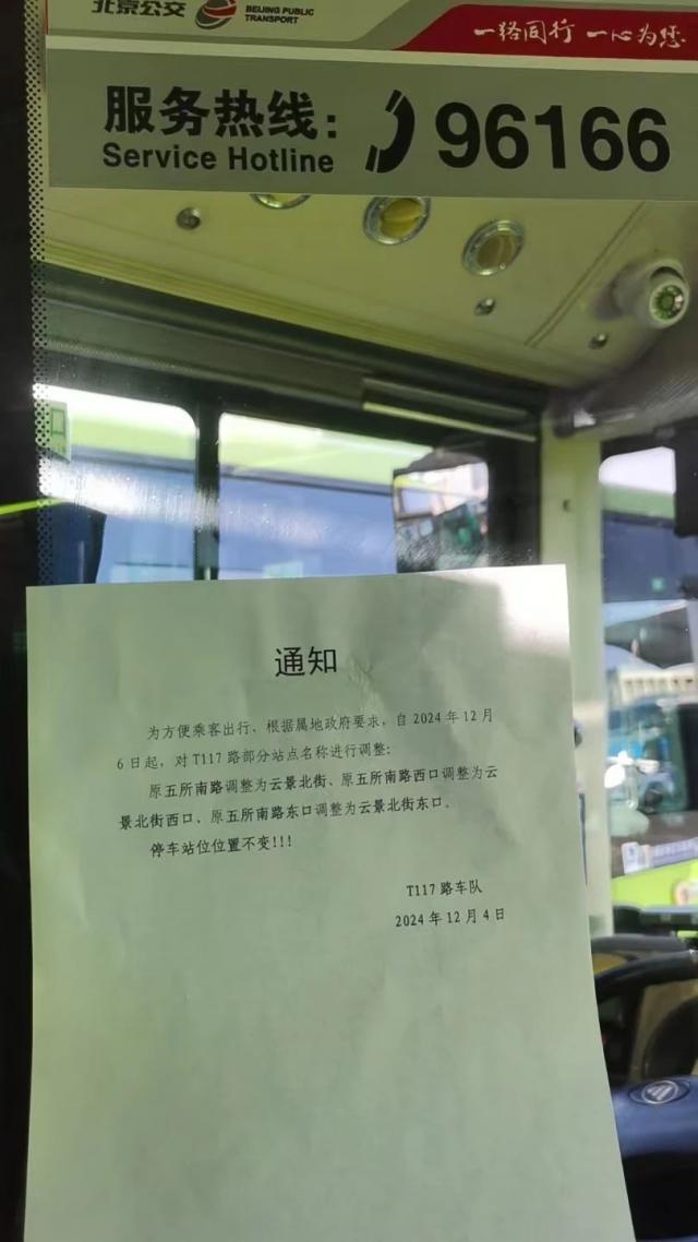 T117 道路相关站牌现已更新 / 北京公交集团客五分企业提供