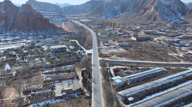 在安宁区十里桃乡村振兴示范区,车辆往来在深度宽阔的道路上,两侧是红瓦白墙的村庄,以及桃林、水果和蔬菜大棚,使得冬天的九合镇看起来安静而壮丽。