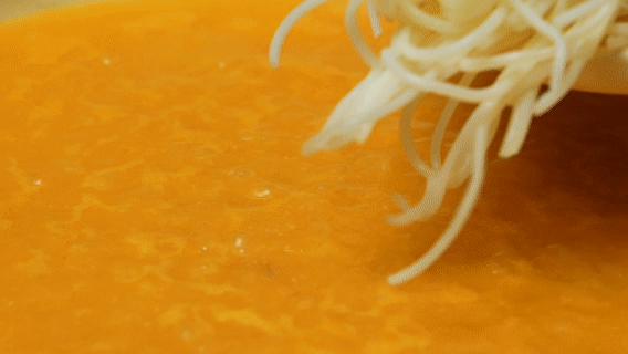 4. 把煮好的米粉、素菜放在盘子里,倒上河鲜汤底,一碗鲜香可口的糟粕醋米粉就做好了。
