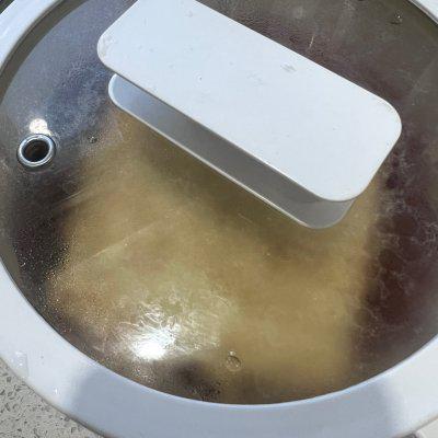 5、一分钟后加入一个鸡蛋,盖上盖子继续煮。 3 分钟