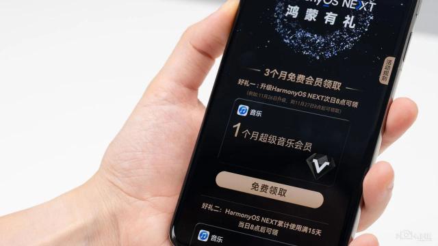 而且,现在福利放送,升级 HarmonyOS NEXT 之后,可以免费获得许多先锋权益,包括 3 华为音乐会员个月,可以同步升级为超级钻石会员。如果你买了新发布的耳机或手机,你也会附上一个 1 月度会员,叠加即可升级。 4 月度超钻会员。