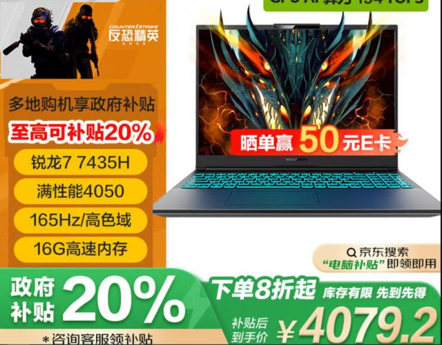 上述就是机械革命龙龙。 16K 大致情况。如你所见,也如牛叔介绍的那样,蛟龙 16K 核显卖点是 RTX 4050,除了这个独特的展示,其它地方都可以用四个字来形容“可以用”。Cpu用的是老平台没有核显的锐龙。 7 7435H,但有 8 核 16 过程;屏幕是 1080P 入门级游戏屏幕,但色域屏幕高,刷新率高;再加上老模具和扣索的存储配置,可以说各方面都缩水了。好在底线还在,可以保证最基本的体验。再次体现在价格上,这款车型就把价格拉到了手中。 4079 元(国补后)下。所以,值得购买吗?