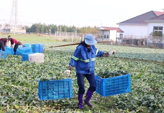 11月26日上午10时,在枫泾镇下坊村一家合作社的种植基地,20多名村民熟练地在田间收获、修剪、装篮子...这是一个繁忙的场景。