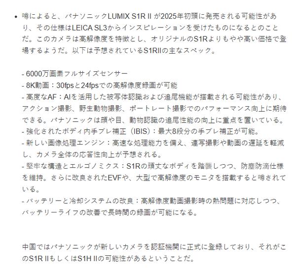 曝光松下Lumix S1R II将于明年年初发布:6000万像素全画幅