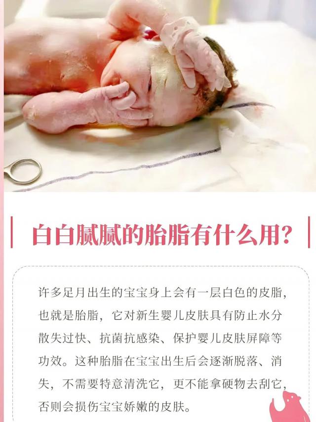 这时,医生平静地说:“别慌,别慌,宝宝健康!这种白色物品叫胎脂,是宝宝的天然保护膜,可以防止羊水浸泡,抑制细菌,防止感染。很多宝宝都有,但有些不明显。你家,胎脂比较厚,表明代谢好,营养素吸收良好,是健康的代表!”