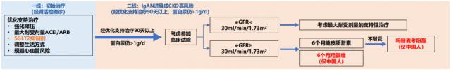 传统 IgA 降压药是肾炎治疗中的一种 RAS 抑制剂和控糖药 SGLT2 抑制剂是一种一线疗法,患者还必须控制饮食,调整健康的生活方式。只有在一线治疗超过 90 天啊,而且病人的蛋白尿还高于 1g/d 在这种情况下,医生可以将其判定为“有进展风险”。