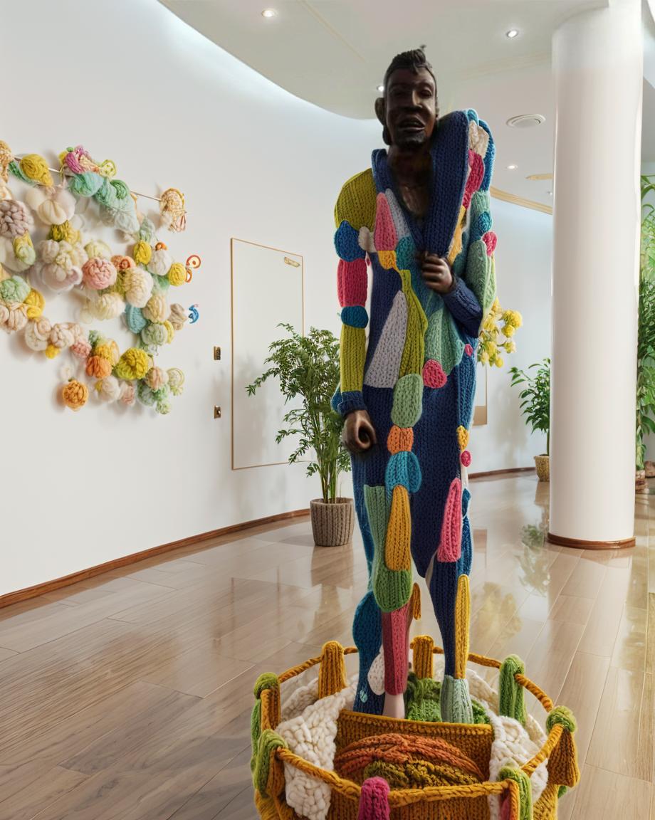 场馆内外的木雕更是“赶潮流”,纷纷穿着五颜六色、设计精致的毛衣造型,热闹地开了一场法术时装秀。