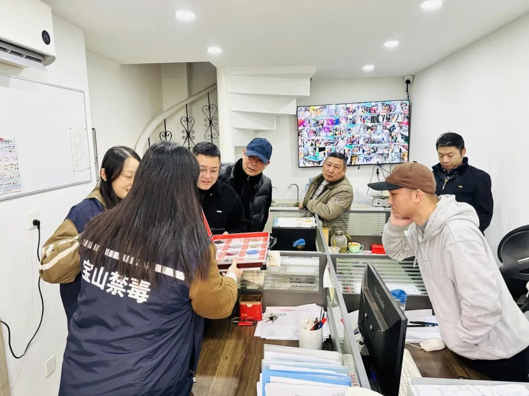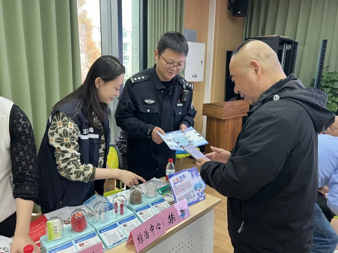 近日,禁毒社会工作者和警察在淞南镇党群服务中心开展禁毒宣传。现场,警方向公众发放禁毒宣传手册,讲解禁毒知识,增强公众禁毒意识。禁毒社工引导大家关注“上海禁毒”微信官方账号,提高公众对毒品危害的认识。