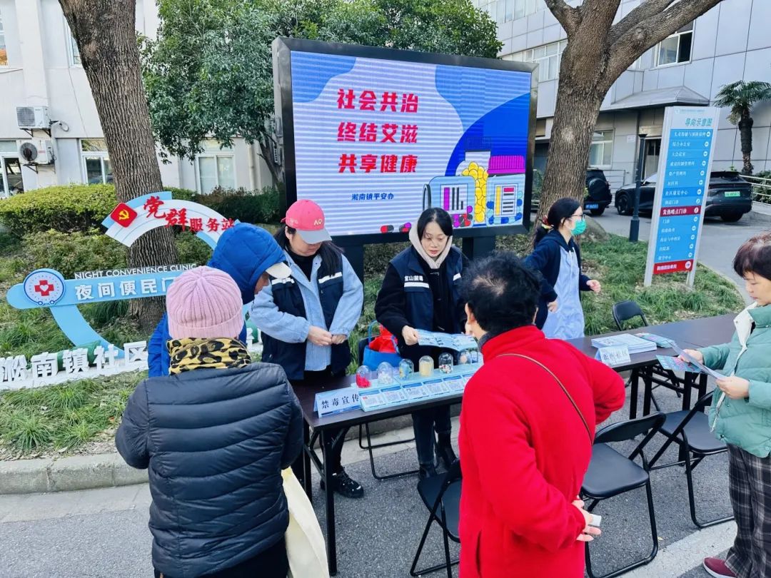 近日,以“社会共治、终结艾滋病、共享健康”为主题的禁毒社工和禁毒志愿者在淞南镇社区卫生服务中心联合开展了禁毒防艾活动。禁毒志愿者通过禁毒宣传册向居民宣传禁毒知识。禁毒社工向现场居民解释:毒品与艾滋病毒密切相关。许多吸毒者使用注射器静脉吸毒,这将增加艾滋病感染的概率。因此,禁毒是预防艾滋病毒的重要组成部分。