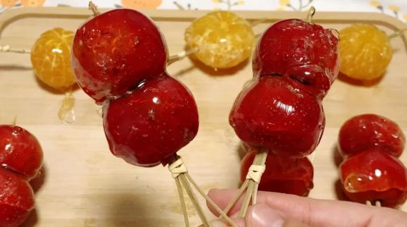 准备好的冰糖葫芦可以放在保鲜袋或油纸上。