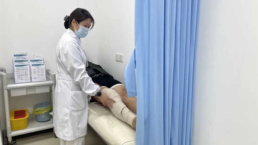 “抬起腿,是的,是的……”一周前,患者柳先生因前交叉韧带断裂进行了关节镜手术。出院后,他觉得家里缺乏康复训练,于是来到了上海市第八人民医院骨科康复护理门诊。在了解了柳先生的情况后,出诊护士指导了他的康复训练,并为他制定了个性化的康复锻炼计划。