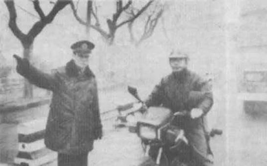 在雾吞没车辆和行人的桥梁上,执勤的警察和武警三五步一岗,用自己的身体将机动车与行人和自行车分开,用哨声引导车辆和行人前进;隧道入口处,大货车运输自行车和行人过河;退休的阿姨和叔叔手里拿着红旗,帮助警察指挥路口的自行车和行人通过...