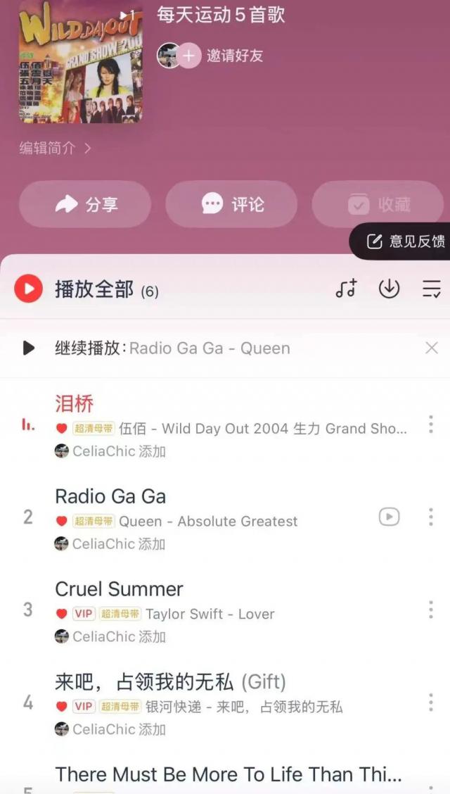 我的网易云建立起来了 5 歌曲的健身时间:(推荐伍佰、皇后乐队、霉运、郑智化等较高的乐队)