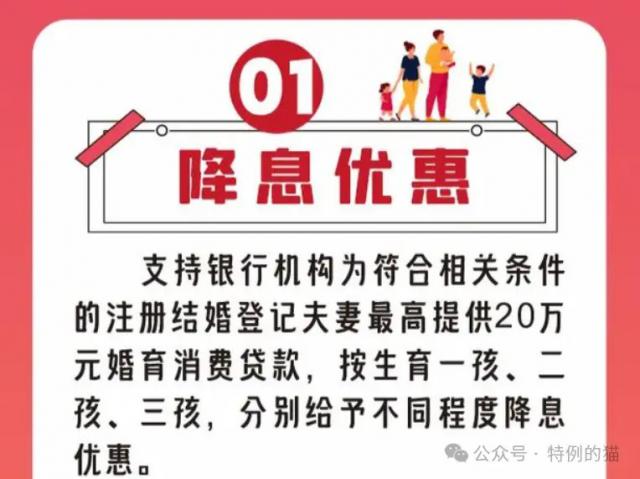 即所有符合相关条件的夫妻,最高可提供 20 生育贷款一万元,按生育一个孩子,二个孩子,三个孩子,分别给予不同程度的降息优惠。
