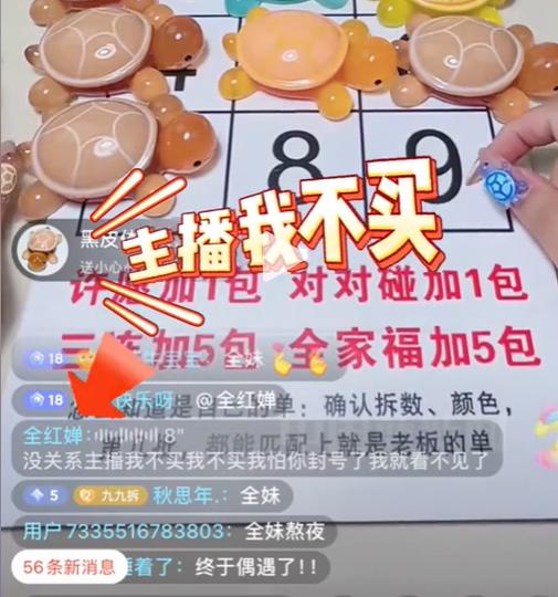 下订单后,主播将在现场公布悬念,逐一打开含有不同颜色的树脂龟盲袋。