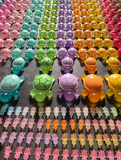 而且最近走红了 “ 乌龟对对碰 ” 竟是那种义乌批发,几块钱就能买到几百只树脂小乌龟。