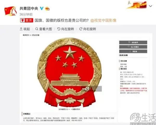 据悉,2016年视觉中国开发的鹰眼图片版权跟踪系统将在全网识别属于公司的版权图片,然后向侵权人发起需求并寻求赔偿。然而,这种“维权销售”模式在2019年春天首次爆发。4月份,欧洲南方天文台ESO遵循CC4.0协议,免费公开了人类的第一张黑洞照片,但被视觉中国视为“版权图片”。后来有网友发现国旗和国徽也成了他们的版权图片。