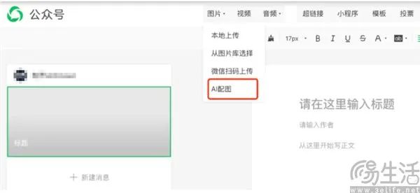 告别版权流氓,微信微信官方账号推出AI配图功能。